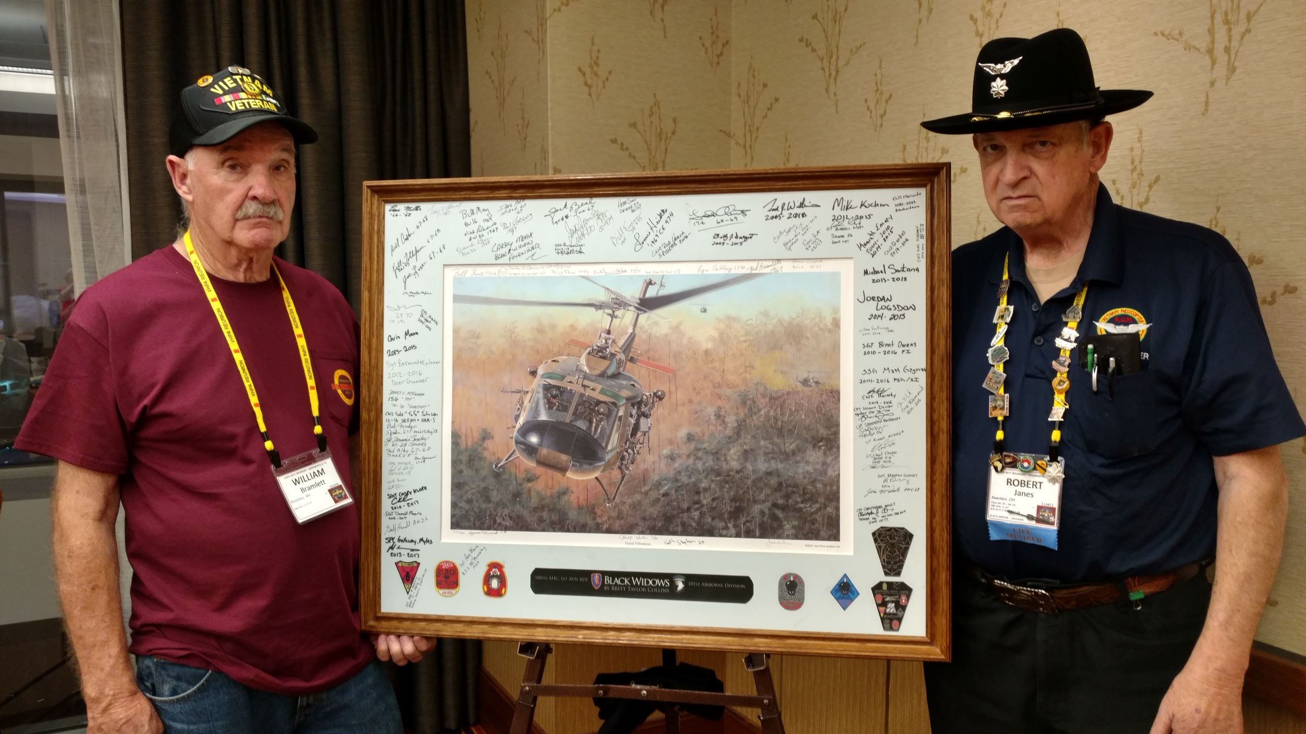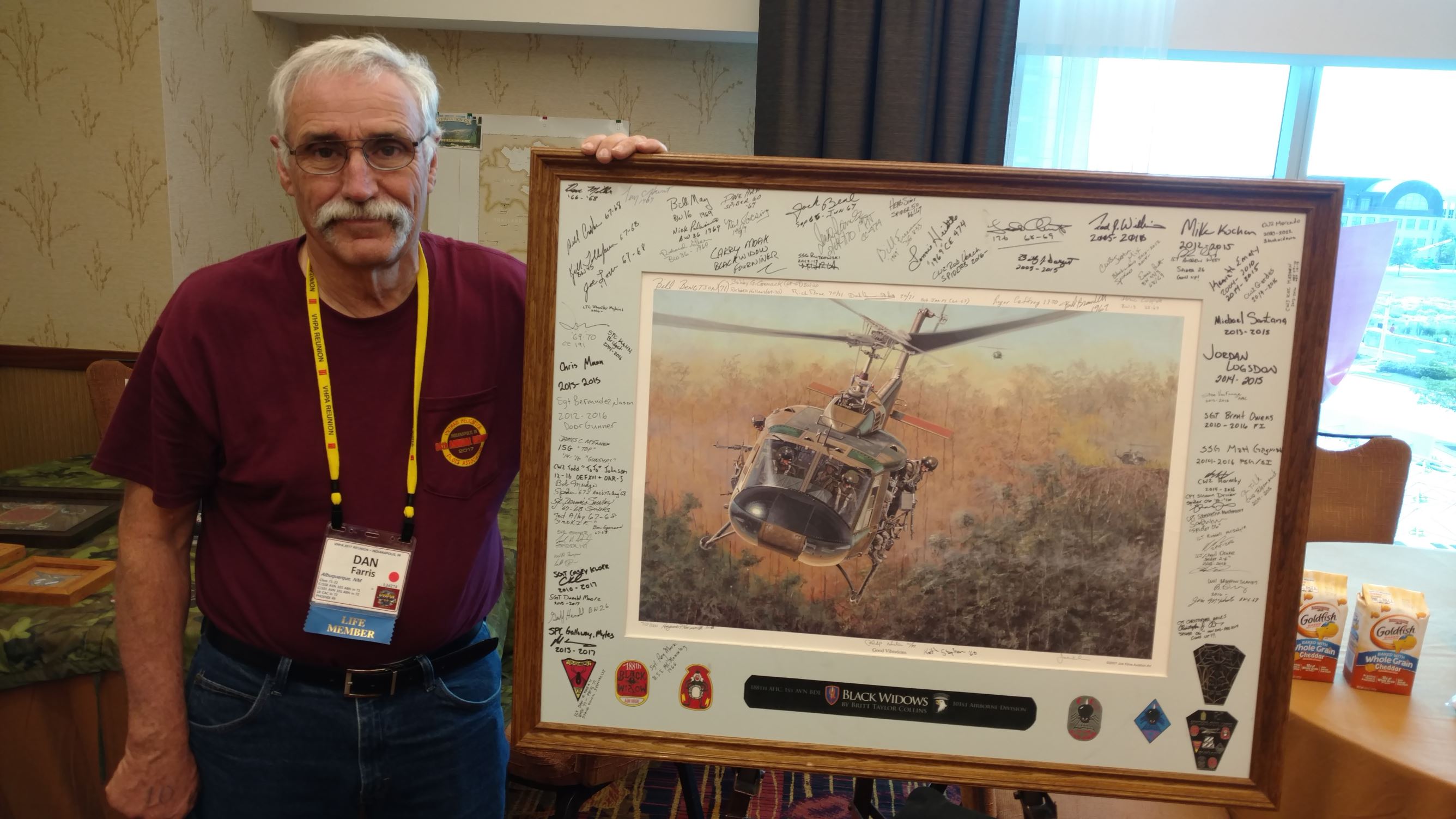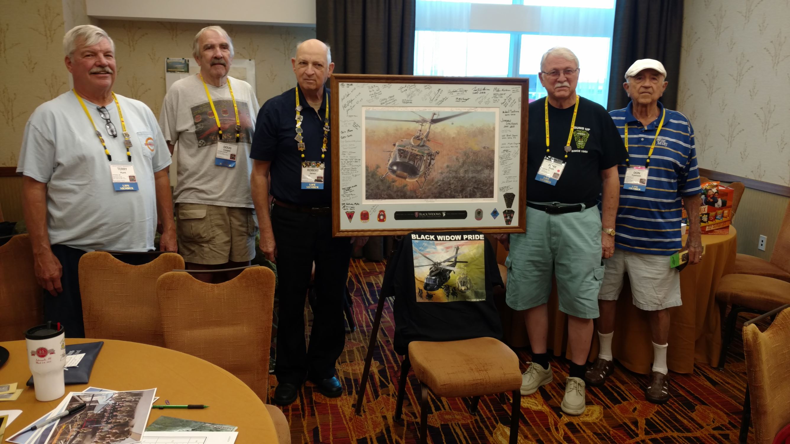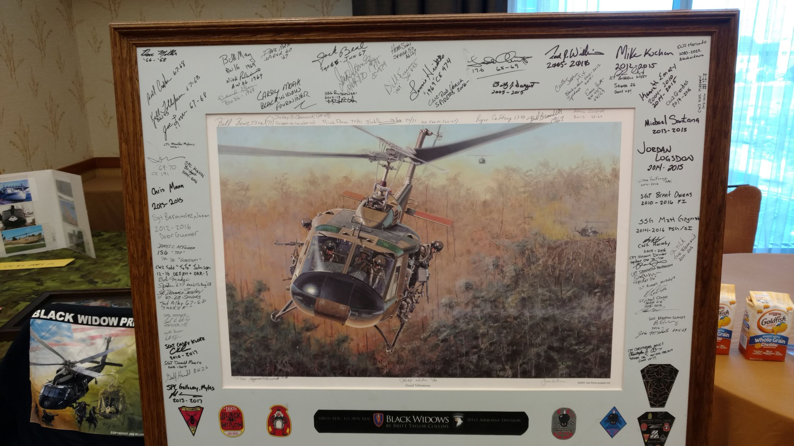 We took a group picture and some single pictures of those who were on trips and got in later. I am sending pictures to those who requested them. We had people who remembered us from other units who stopped by to share their stories and memories. We had a great time telling stories and enjoying the many displays. We saw some new faces and they signed the Helicopter picture we have been carrying to the reunions, which will be donated to the Museum at Ft. Campbell when completed.
