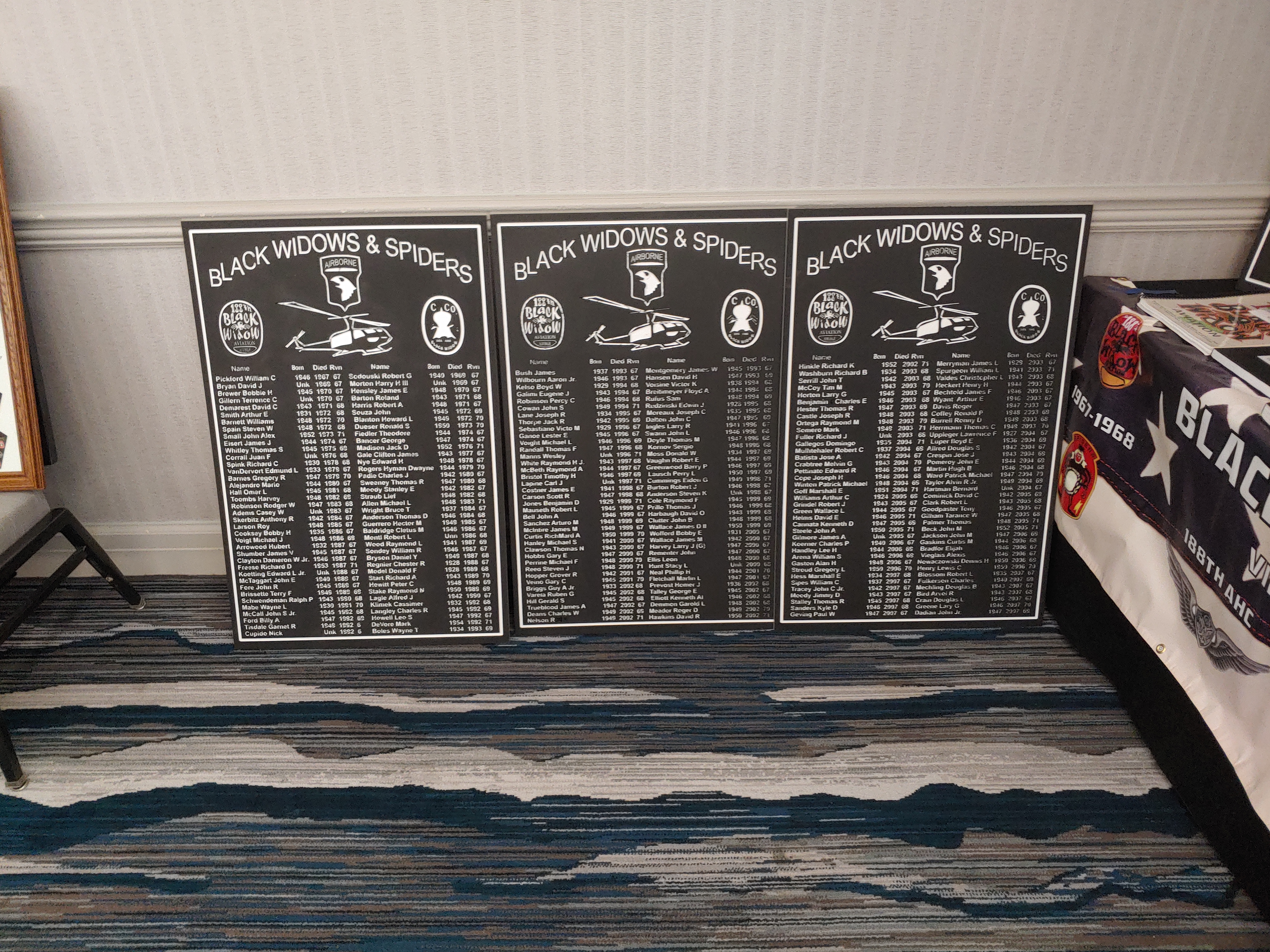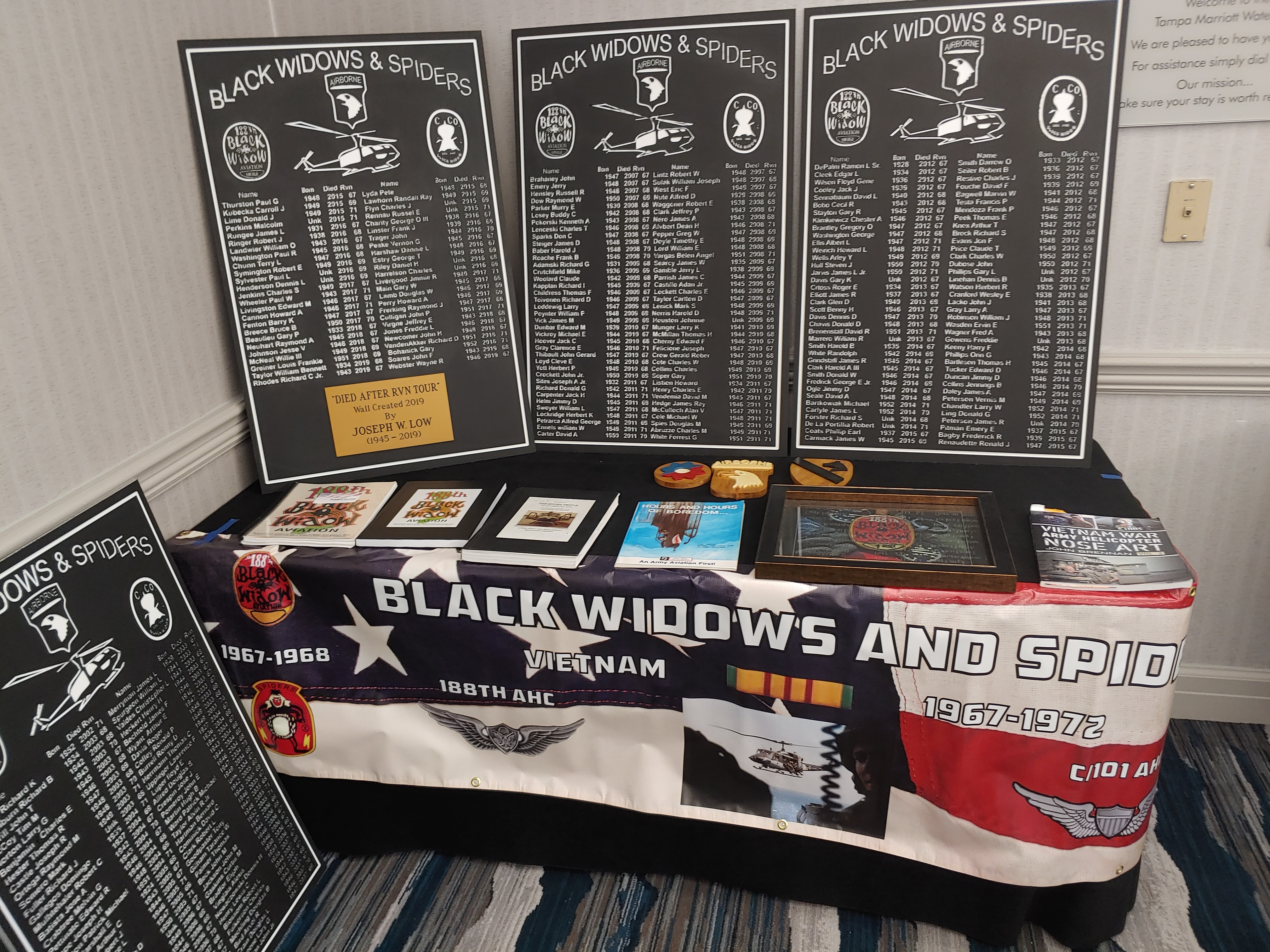 Bob and Sharon Janes hosted a mini reunion at the Tampa VHPA reunion. The Joe Low plaques, the 188th – C/101 Banner and the Joe Kline print with all the signatures were on display. They were very well received.